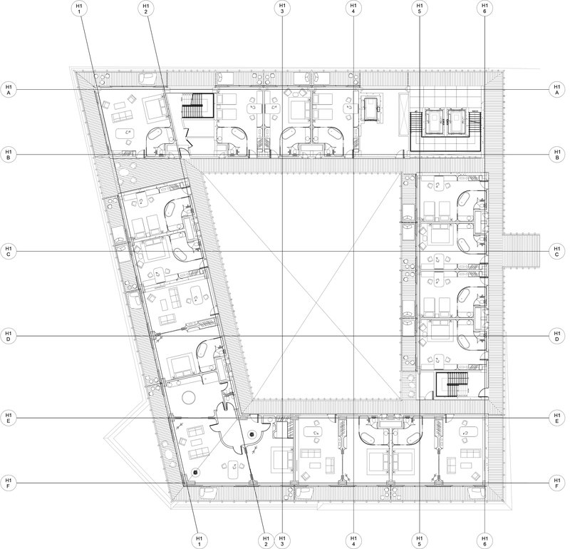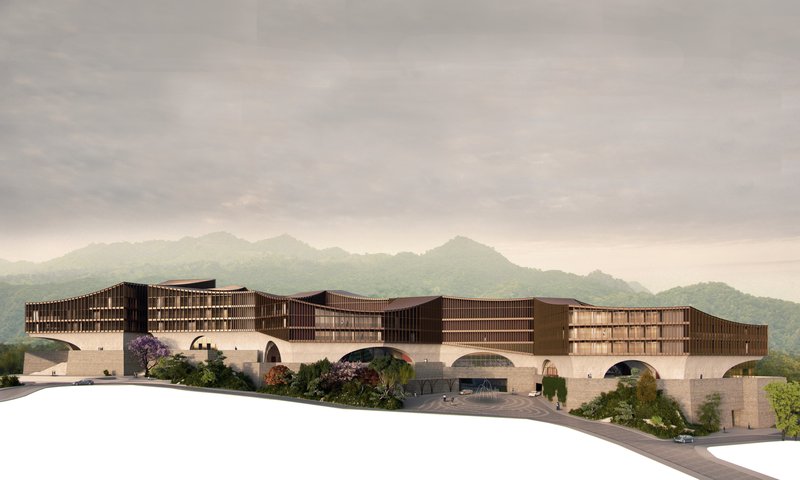 The Hsinchu Stone Village Resort Hotel forms part of our masterplan for the Hsinchu Stone Village in Taiwan. The hotel sits at the highest point of a new village, separated by a dramatic landscape. The proposal seeks to create a contemporary re-interpretation of a Chinese Hill Village formed from a series of courtyard buildings of varying scales. Four courtyards are connected by a series of walkways, bridges and courts.