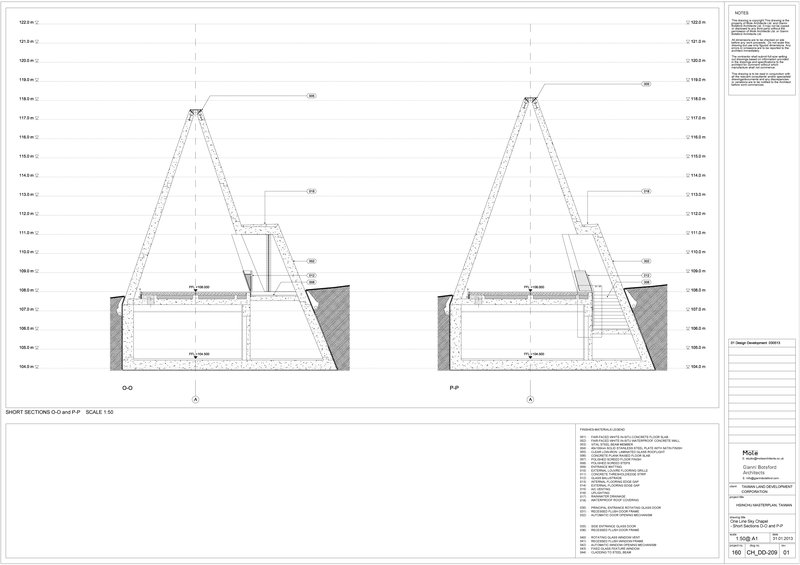 The non-denominational wedding chapel is part of the Hsinchu Stone Village Masterplan carried out with Mole Architects and Todd Longstaffe-Gowan Landscape Architects for the Taiwan Land Development Corporation. The 60 person Chapel sits in its own hillside landscape to the north of the new resort hotel, and is designed primarily as a wedding chapel but also to be able to accommodate other events such as recitals.